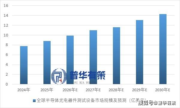 中国半导体光电器件测试设备市场的走势与全球市场基本一致,其规模从2020年的14.8亿元增至2024年的21.0亿元,预计2030年达42.6亿元。