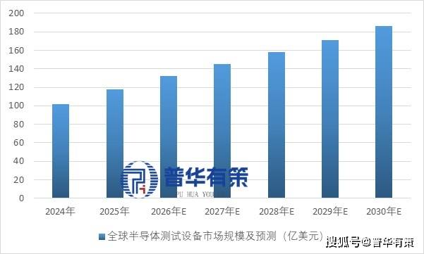 2020年市场规模为62.8亿美元,至2024年首次突破百亿美元大关达到102.0亿美元;预计2025至2029年将继续稳步扩张,2030年市场规模将到的186.0亿美元,这一增长主要得益于半导体行业整体发展及集成电路、分立器件、光电器件测试设备(包括WAT)等细分领域需求的持续提升。